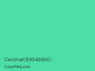Decimal 84946966 Color is a normal green color and the nearest color is Eucalyptus #44d7a8. Hex code #4ddda8 and RGB value is rgb(77,221,168). In RGB color space, this color is composed of 30% red, 87% green, 66% blue, In CMYK color space, this color is composed of 65% cyan, 0% magenta, 24% yellow , 13% black , In HSL color space, this color has a hue angle of 158° , 68% saturation and 58% lightness.