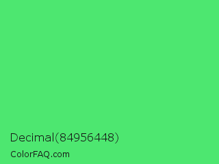 Decimal 84956448 Color is a normal green color and the nearest color is UFO Green #3cd070. Hex code #4de770 and RGB value is rgb(77,231,112). In RGB color space, this color is composed of 30% red, 91% green, 44% blue, In CMYK color space, this color is composed of 67% cyan, 0% magenta, 52% yellow , 9% black , In HSL color space, this color has a hue angle of 134° , 76% saturation and 60% lightness.