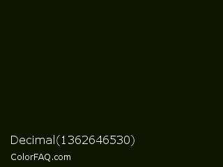 Decimal 1362646530 Color is a almost black lime color and the nearest color is Green Waterloo #101405. Hex code #101502 and RGB value is rgb(16,21,2). In RGB color space, this color is composed of 6% red, 8% green, 1% blue, In CMYK color space, this color is composed of 24% cyan, 0% magenta, 90% yellow , 92% black , In HSL color space, this color has a hue angle of 76° , 83% saturation and 5% lightness.