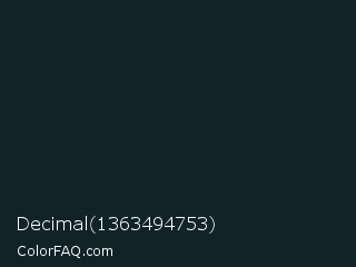 Decimal 1363494753 Color is a very dark blue color and the nearest color is Firefly #0e2a30. Hex code #112329 and RGB value is rgb(17,35,41). In RGB color space, this color is composed of 7% red, 14% green, 16% blue, In CMYK color space, this color is composed of 59% cyan, 15% magenta, 0% yellow , 84% black , In HSL color space, this color has a hue angle of 195° , 41% saturation and 11% lightness.