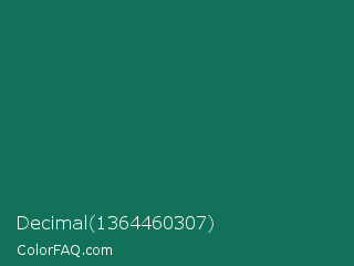 Decimal 1364460307 Color is a dark cyan color and the nearest color is Watercourse #056f57. Hex code #127159 and RGB value is rgb(18,113,89). In RGB color space, this color is composed of 7% red, 44% green, 35% blue, In CMYK color space, this color is composed of 84% cyan, 0% magenta, 21% yellow , 56% black , In HSL color space, this color has a hue angle of 165° , 73% saturation and 26% lightness.