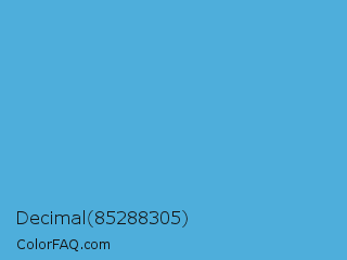 Decimal 85288305 Color is a normal blue color and the nearest color is Shakespeare #4eabd1. Hex code #4eaedb and RGB value is rgb(78,174,219). In RGB color space, this color is composed of 31% red, 68% green, 86% blue, In CMYK color space, this color is composed of 64% cyan, 21% magenta, 0% yellow , 14% black , In HSL color space, this color has a hue angle of 199° , 66% saturation and 58% lightness.