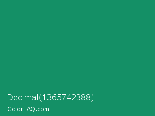 Decimal 1365742388 Color is a normal green color and the nearest color is Elf Green #088370. Hex code #149066 and RGB value is rgb(20,144,102). In RGB color space, this color is composed of 8% red, 56% green, 40% blue, In CMYK color space, this color is composed of 86% cyan, 0% magenta, 29% yellow , 44% black , In HSL color space, this color has a hue angle of 160° , 76% saturation and 32% lightness.