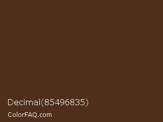 Decimal 85496835 Color is a very dark orange color and the nearest color is Saddle #4c3024. Hex code #4f2f1b and RGB value is rgb(79,47,27). In RGB color space, this color is composed of 31% red, 18% green, 11% blue, In CMYK color space, this color is composed of 0% cyan, 41% magenta, 66% yellow , 69% black , In HSL color space, this color has a hue angle of 23° , 49% saturation and 21% lightness.