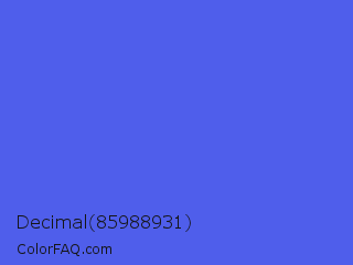 Decimal 85988931 Color is a light blue color and the nearest color is Ultramarine Blue #4166f5. Hex code #4f5eeb and RGB value is rgb(79,94,235). In RGB color space, this color is composed of 31% red, 37% green, 92% blue, In CMYK color space, this color is composed of 66% cyan, 60% magenta, 0% yellow , 8% black , In HSL color space, this color has a hue angle of 234° , 80% saturation and 62% lightness.