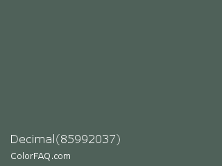 Decimal 85992037 Color is a normal green color and the nearest color is Feldgrau #4d5d53. Hex code #4f6159 and RGB value is rgb(79,97,89). In RGB color space, this color is composed of 31% red, 38% green, 35% blue, In CMYK color space, this color is composed of 19% cyan, 0% magenta, 8% yellow , 62% black , In HSL color space, this color has a hue angle of 153° , 10% saturation and 35% lightness.