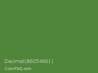 Decimal 86054661 Color is a normal green color and the nearest color is May Green #4c9141. Hex code #4f8639 and RGB value is rgb(79,134,57). In RGB color space, this color is composed of 31% red, 53% green, 22% blue, In CMYK color space, this color is composed of 41% cyan, 0% magenta, 57% yellow , 47% black , In HSL color space, this color has a hue angle of 103° , 40% saturation and 37% lightness.