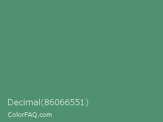 Decimal 86066551 Color is a normal green color and the nearest color is Wintergreen Dream #56887d. Hex code #4f9171 and RGB value is rgb(79,145,113). In RGB color space, this color is composed of 31% red, 57% green, 44% blue, In CMYK color space, this color is composed of 46% cyan, 0% magenta, 22% yellow , 43% black , In HSL color space, this color has a hue angle of 151° , 29% saturation and 44% lightness.