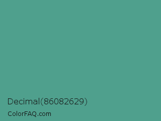 Decimal 86082629 Color is a normal cyan color and the nearest color is Polished Pine #5da493. Hex code #4fa08d and RGB value is rgb(79,160,141). In RGB color space, this color is composed of 31% red, 63% green, 55% blue, In CMYK color space, this color is composed of 51% cyan, 0% magenta, 12% yellow , 37% black , In HSL color space, this color has a hue angle of 166° , 34% saturation and 47% lightness.