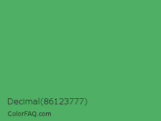 Decimal 86123777 Color is a normal green color and the nearest color is Chateau Green #40a860. Hex code #4fb065 and RGB value is rgb(79,176,101). In RGB color space, this color is composed of 31% red, 69% green, 40% blue, In CMYK color space, this color is composed of 55% cyan, 0% magenta, 43% yellow , 31% black , In HSL color space, this color has a hue angle of 134° , 38% saturation and 50% lightness.