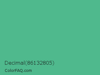 Decimal 86132805 Color is a normal green color and the nearest color is Ocean Green #48bf91. Hex code #4fb98d and RGB value is rgb(79,185,141). In RGB color space, this color is composed of 31% red, 73% green, 55% blue, In CMYK color space, this color is composed of 57% cyan, 0% magenta, 24% yellow , 27% black , In HSL color space, this color has a hue angle of 155° , 43% saturation and 52% lightness.