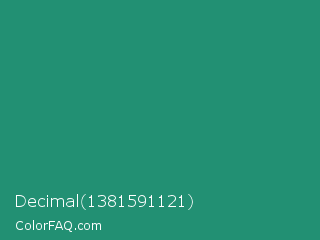 Decimal 1381591121 Color is a normal cyan color and the nearest color is Illuminating Emerald #319177. Hex code #229073 and RGB value is rgb(34,144,115). In RGB color space, this color is composed of 13% red, 56% green, 45% blue, In CMYK color space, this color is composed of 76% cyan, 0% magenta, 20% yellow , 44% black , In HSL color space, this color has a hue angle of 164° , 62% saturation and 35% lightness.