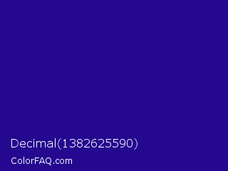 Decimal 1382625590 Color is a dark indigo color and the nearest color is Blue Gem #2c0e8c. Hex code #240890 and RGB value is rgb(36,8,144). In RGB color space, this color is composed of 14% red, 3% green, 56% blue, In CMYK color space, this color is composed of 75% cyan, 94% magenta, 0% yellow , 44% black , In HSL color space, this color has a hue angle of 252° , 89% saturation and 30% lightness.