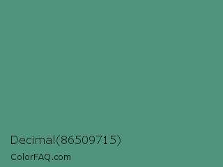 Decimal 86509715 Color is a normal green color and the nearest color is Wintergreen Dream #56887d. Hex code #50947d and RGB value is rgb(80,148,125). In RGB color space, this color is composed of 31% red, 58% green, 49% blue, In CMYK color space, this color is composed of 46% cyan, 0% magenta, 16% yellow , 42% black , In HSL color space, this color has a hue angle of 160° , 30% saturation and 45% lightness.
