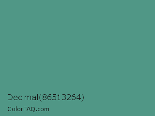 Decimal 86513264 Color is a normal cyan color and the nearest color is Wintergreen Dream #56887d. Hex code #509786 and RGB value is rgb(80,151,134). In RGB color space, this color is composed of 31% red, 59% green, 53% blue, In CMYK color space, this color is composed of 47% cyan, 0% magenta, 11% yellow , 41% black , In HSL color space, this color has a hue angle of 166° , 31% saturation and 45% lightness.