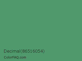 Decimal 86516054 Color is a normal green color and the nearest color is Fruit Salad #4f9d5d. Hex code #50996c and RGB value is rgb(80,153,108). In RGB color space, this color is composed of 31% red, 60% green, 42% blue, In CMYK color space, this color is composed of 48% cyan, 0% magenta, 29% yellow , 40% black , In HSL color space, this color has a hue angle of 143° , 31% saturation and 46% lightness.