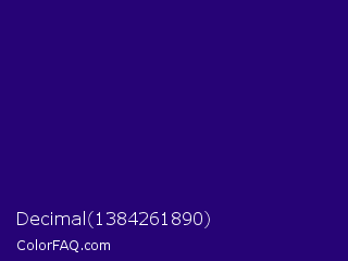 Decimal 1384261890 Color is a dark indigo color and the nearest color is Deep Blue #220878. Hex code #260376 and RGB value is rgb(38,3,118). In RGB color space, this color is composed of 15% red, 1% green, 46% blue, In CMYK color space, this color is composed of 68% cyan, 97% magenta, 0% yellow , 54% black , In HSL color space, this color has a hue angle of 258° , 95% saturation and 24% lightness.