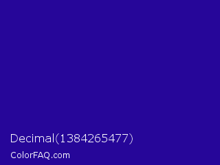 Decimal 1384265477 Color is a normal indigo color and the nearest color is Blue Gem #2c0e8c. Hex code #260699 and RGB value is rgb(38,6,153). In RGB color space, this color is composed of 15% red, 2% green, 60% blue, In CMYK color space, this color is composed of 75% cyan, 96% magenta, 0% yellow , 40% black , In HSL color space, this color has a hue angle of 253° , 92% saturation and 31% lightness.