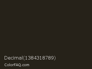 Decimal 1384318789 Color is a very dark orange color and the nearest color is Zeus #292319. Hex code #262219 and RGB value is rgb(38,34,25). In RGB color space, this color is composed of 15% red, 13% green, 10% blue, In CMYK color space, this color is composed of 0% cyan, 11% magenta, 34% yellow , 85% black , In HSL color space, this color has a hue angle of 42° , 21% saturation and 12% lightness.