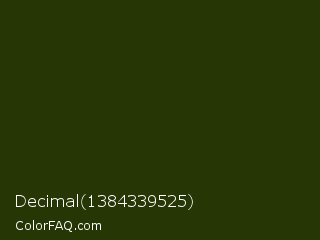 Decimal 1384339525 Color is a very dark green color and the nearest color is Turtle Green #2a380b. Hex code #263605 and RGB value is rgb(38,54,5). In RGB color space, this color is composed of 15% red, 21% green, 2% blue, In CMYK color space, this color is composed of 30% cyan, 0% magenta, 91% yellow , 79% black , In HSL color space, this color has a hue angle of 80° , 83% saturation and 12% lightness.