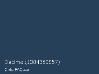Decimal 1384350857 Color is a dark blue color and the nearest color is Cello #1e385b. Hex code #264059 and RGB value is rgb(38,64,89). In RGB color space, this color is composed of 15% red, 25% green, 35% blue, In CMYK color space, this color is composed of 57% cyan, 28% magenta, 0% yellow , 65% black , In HSL color space, this color has a hue angle of 209° , 40% saturation and 25% lightness.