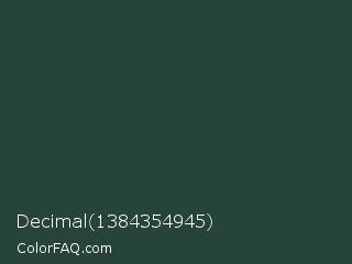 Decimal 1384354945 Color is a very dark green color and the nearest color is Te Papa Green #1e433c. Hex code #264439 and RGB value is rgb(38,68,57). In RGB color space, this color is composed of 15% red, 27% green, 22% blue, In CMYK color space, this color is composed of 44% cyan, 0% magenta, 16% yellow , 73% black , In HSL color space, this color has a hue angle of 158° , 28% saturation and 21% lightness.