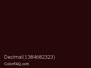 Decimal 1384682323 Color is a almost black red color and the nearest color is Kilamanjaro #240c02. Hex code #270709 and RGB value is rgb(39,7,9). In RGB color space, this color is composed of 15% red, 3% green, 4% blue, In CMYK color space, this color is composed of 0% cyan, 82% magenta, 77% yellow , 85% black , In HSL color space, this color has a hue angle of 356° , 70% saturation and 9% lightness.