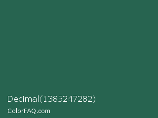 Decimal 1385247282 Color is a dark green color and the nearest color is Stromboli #325d52. Hex code #276450 and RGB value is rgb(39,100,80). In RGB color space, this color is composed of 15% red, 39% green, 31% blue, In CMYK color space, this color is composed of 61% cyan, 0% magenta, 20% yellow , 61% black , In HSL color space, this color has a hue angle of 160° , 44% saturation and 27% lightness.