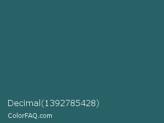 Decimal 1392785428 Color is a dark cyan color and the nearest color is Casal #2f6168. Hex code #296266 and RGB value is rgb(41,98,102). In RGB color space, this color is composed of 16% red, 38% green, 40% blue, In CMYK color space, this color is composed of 60% cyan, 4% magenta, 0% yellow , 60% black , In HSL color space, this color has a hue angle of 184° , 43% saturation and 28% lightness.