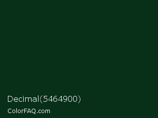 Decimal 5464900 Color is a very dark green color and the nearest color is Bush #0d2e1c. Hex code #082f18 and RGB value is rgb(8,47,24). In RGB color space, this color is composed of 3% red, 18% green, 9% blue, In CMYK color space, this color is composed of 83% cyan, 0% magenta, 49% yellow , 82% black , In HSL color space, this color has a hue angle of 145° , 71% saturation and 11% lightness.