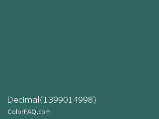 Decimal 1399014998 Color is a dark cyan color and the nearest color is Casal #2f6168. Hex code #326660 and RGB value is rgb(50,102,96). In RGB color space, this color is composed of 20% red, 40% green, 38% blue, In CMYK color space, this color is composed of 51% cyan, 0% magenta, 6% yellow , 60% black , In HSL color space, this color has a hue angle of 173° , 34% saturation and 30% lightness.