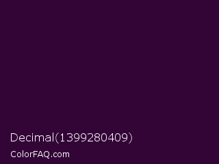 Decimal 1399280409 Color is a very dark magenta color and the nearest color is Mardi Gras #350036. Hex code #330537 and RGB value is rgb(51,5,55). In RGB color space, this color is composed of 20% red, 2% green, 22% blue, In CMYK color space, this color is composed of 7% cyan, 91% magenta, 0% yellow , 78% black , In HSL color space, this color has a hue angle of 295° , 83% saturation and 12% lightness.