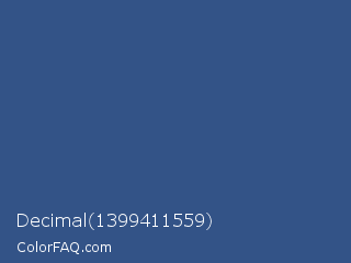 Decimal 1399411559 Color is a normal blue color and the nearest color is Chambray #354e8c. Hex code #335387 and RGB value is rgb(51,83,135). In RGB color space, this color is composed of 20% red, 33% green, 53% blue, In CMYK color space, this color is composed of 62% cyan, 39% magenta, 0% yellow , 47% black , In HSL color space, this color has a hue angle of 217° , 45% saturation and 36% lightness.