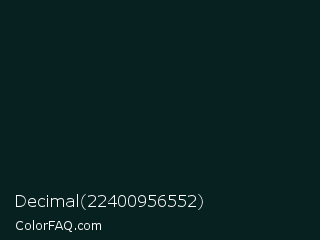 Decimal 22400956552 Color is a almost black cyan color and the nearest color is Swamp #001b1c. Hex code #072020 and RGB value is rgb(7,32,32). In RGB color space, this color is composed of 3% red, 13% green, 13% blue, In CMYK color space, this color is composed of 78% cyan, 0% magenta, 0% yellow , 87% black , In HSL color space, this color has a hue angle of 180° , 64% saturation and 8% lightness.
