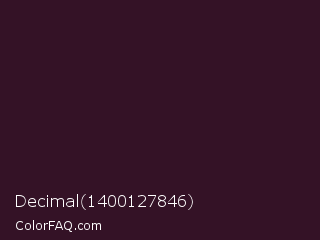 Decimal 1400127846 Color is a very dark magenta color and the nearest color is Melanzane #300529. Hex code #341226 and RGB value is rgb(52,18,38). In RGB color space, this color is composed of 20% red, 7% green, 15% blue, In CMYK color space, this color is composed of 0% cyan, 65% magenta, 27% yellow , 80% black , In HSL color space, this color has a hue angle of 325° , 49% saturation and 14% lightness.