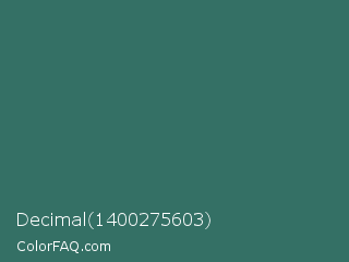 Decimal 1400275603 Color is a normal cyan color and the nearest color is William #3a686c. Hex code #347065 and RGB value is rgb(52,112,101). In RGB color space, this color is composed of 20% red, 44% green, 40% blue, In CMYK color space, this color is composed of 54% cyan, 0% magenta, 10% yellow , 56% black , In HSL color space, this color has a hue angle of 169° , 37% saturation and 32% lightness.