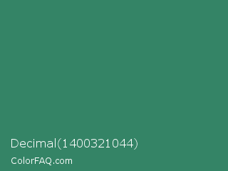 Decimal 1400321044 Color is a normal green color and the nearest color is Viridian #40826d. Hex code #348466 and RGB value is rgb(52,132,102). In RGB color space, this color is composed of 20% red, 52% green, 40% blue, In CMYK color space, this color is composed of 61% cyan, 0% magenta, 23% yellow , 48% black , In HSL color space, this color has a hue angle of 158° , 43% saturation and 36% lightness.