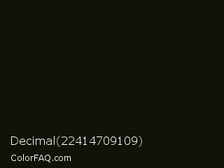 Decimal 22414709109 Color is a almost black yellow color and the nearest color is Green Waterloo #101405. Hex code #121207 and RGB value is rgb(18,18,7). In RGB color space, this color is composed of 7% red, 7% green, 3% blue, In CMYK color space, this color is composed of 0% cyan, 0% magenta, 61% yellow , 93% black , In HSL color space, this color has a hue angle of 60° , 44% saturation and 5% lightness.