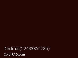 Decimal 22433854785 Color is a almost black red color and the nearest color is Kilamanjaro #240c02. Hex code #250705 and RGB value is rgb(37,7,5). In RGB color space, this color is composed of 15% red, 3% green, 2% blue, In CMYK color space, this color is composed of 0% cyan, 81% magenta, 86% yellow , 85% black , In HSL color space, this color has a hue angle of 4° , 76% saturation and 8% lightness.