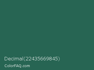 Decimal 22435669845 Color is a dark green color and the nearest color is Stromboli #325d52. Hex code #276553 and RGB value is rgb(39,101,83). In RGB color space, this color is composed of 15% red, 40% green, 33% blue, In CMYK color space, this color is composed of 61% cyan, 0% magenta, 18% yellow , 60% black , In HSL color space, this color has a hue angle of 163° , 44% saturation and 27% lightness.