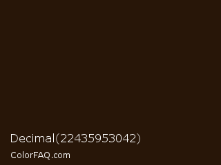 Decimal 22435953042 Color is a almost black orange color and the nearest color is Graphite #251607. Hex code #281608 and RGB value is rgb(40,22,8). In RGB color space, this color is composed of 16% red, 9% green, 3% blue, In CMYK color space, this color is composed of 0% cyan, 45% magenta, 80% yellow , 84% black , In HSL color space, this color has a hue angle of 26° , 67% saturation and 9% lightness.