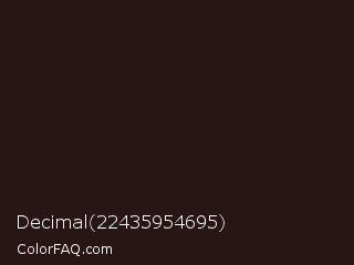 Decimal 22435954695 Color is a very dark red color and the nearest color is Gondola #261414. Hex code #281617 and RGB value is rgb(40,22,23). In RGB color space, this color is composed of 16% red, 9% green, 9% blue, In CMYK color space, this color is composed of 0% cyan, 45% magenta, 43% yellow , 84% black , In HSL color space, this color has a hue angle of 357° , 29% saturation and 12% lightness.