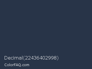 Decimal 22436402998 Color is a very dark blue color and the nearest color is Tuna #353542. Hex code #283448 and RGB value is rgb(40,52,72). In RGB color space, this color is composed of 16% red, 20% green, 28% blue, In CMYK color space, this color is composed of 44% cyan, 28% magenta, 0% yellow , 72% black , In HSL color space, this color has a hue angle of 218° , 29% saturation and 22% lightness.