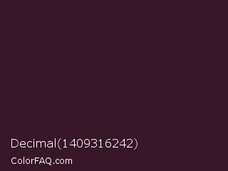 Decimal 1409316242 Color is a very dark rose color and the nearest color is Jon #3b1f1f. Hex code #381728 and RGB value is rgb(56,23,40). In RGB color space, this color is composed of 22% red, 9% green, 16% blue, In CMYK color space, this color is composed of 0% cyan, 59% magenta, 29% yellow , 78% black , In HSL color space, this color has a hue angle of 329° , 42% saturation and 15% lightness.