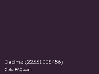 Decimal 22551228456 Color is a very dark magenta color and the nearest color is Dark Purple #301934. Hex code #342034 and RGB value is rgb(52,32,52). In RGB color space, this color is composed of 20% red, 13% green, 20% blue, In CMYK color space, this color is composed of 0% cyan, 38% magenta, 0% yellow , 80% black , In HSL color space, this color has a hue angle of 300° , 24% saturation and 16% lightness.
