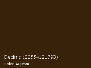 Decimal 22554121793 Color is a very dark orange color and the nearest color is Clinker #371d09. Hex code #382209 and RGB value is rgb(56,34,9). In RGB color space, this color is composed of 22% red, 13% green, 4% blue, In CMYK color space, this color is composed of 0% cyan, 39% magenta, 84% yellow , 78% black , In HSL color space, this color has a hue angle of 32° , 72% saturation and 13% lightness.
