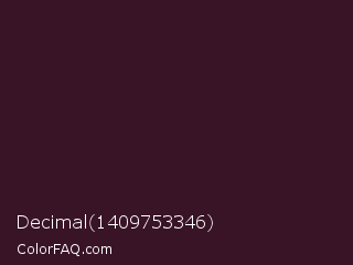 Decimal 1409753346 Color is a very dark rose color and the nearest color is Jon #3b1f1f. Hex code #391326 and RGB value is rgb(57,19,38). In RGB color space, this color is composed of 22% red, 7% green, 15% blue, In CMYK color space, this color is composed of 0% cyan, 67% magenta, 33% yellow , 78% black , In HSL color space, this color has a hue angle of 330° , 50% saturation and 15% lightness.