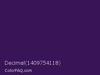 Decimal 1409754118 Color is a very dark purple color and the nearest color is Jagger #350e57. Hex code #391456 and RGB value is rgb(57,20,86). In RGB color space, this color is composed of 22% red, 8% green, 34% blue, In CMYK color space, this color is composed of 34% cyan, 77% magenta, 0% yellow , 66% black , In HSL color space, this color has a hue angle of 274° , 62% saturation and 21% lightness.