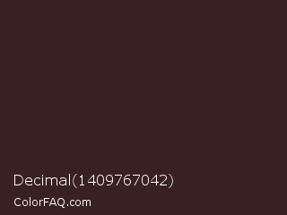 Decimal 1409767042 Color is a very dark red color and the nearest color is Jon #3b1f1f. Hex code #392122 and RGB value is rgb(57,33,34). In RGB color space, this color is composed of 22% red, 13% green, 13% blue, In CMYK color space, this color is composed of 0% cyan, 42% magenta, 40% yellow , 78% black , In HSL color space, this color has a hue angle of 358° , 27% saturation and 18% lightness.