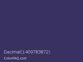 Decimal 1409783872 Color is a dark indigo color and the nearest color is Deep Koamaru #333366. Hex code #393160 and RGB value is rgb(57,49,96). In RGB color space, this color is composed of 22% red, 19% green, 38% blue, In CMYK color space, this color is composed of 41% cyan, 49% magenta, 0% yellow , 62% black , In HSL color space, this color has a hue angle of 250° , 32% saturation and 28% lightness.